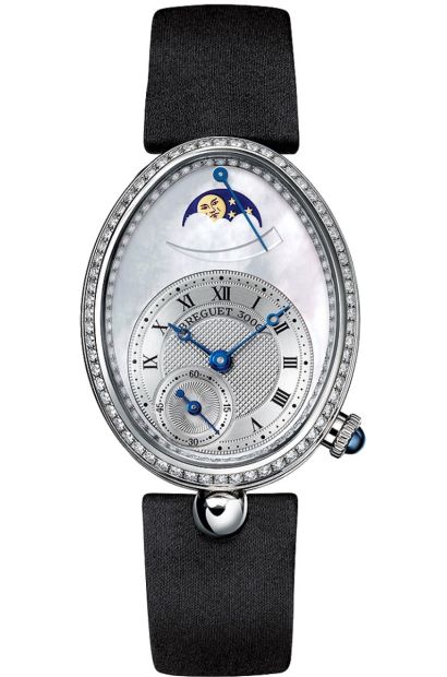 The Breguet REINE DE NAPLES Model: 8908BB52864D00D-1 is a beautification of elegance which gives out an aura of royalty and sophistication. It has an aesthetic 28.5mm white gold case and a mother-of-pearl dial for that glamorous and classy touch. The sapphire crystal offers crystal clear front in dials and keeps it beautiful and elegant and the automatic mechanism is an advantage in that it offers a power reserve of 48 hours. This is complemented by the white gold bezel which makes it even more luxurious. The Breguet REINE DE NAPLES Model: 8908BB52864D00D-1 is ideal for the ladies who desire both elegance and practicality in the watch that they are going to purchase formally.