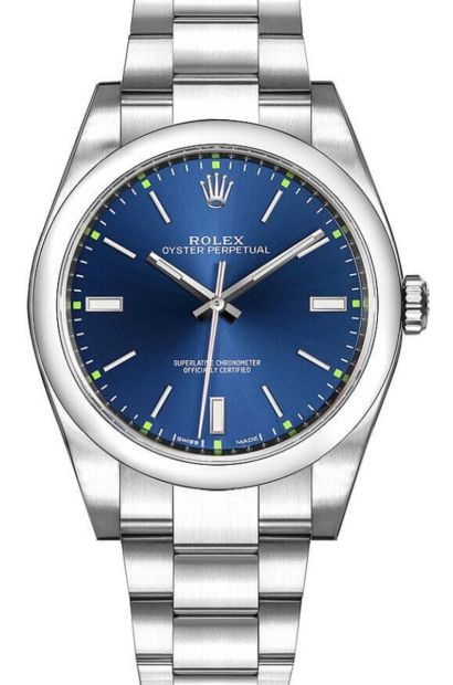 Introducing the Rolex OYSTER PERPETUAL 34 Model: ‘’ catch phrase’’ 114300-0003 – the watch for the bright style and reliable functioning. The watch comes with a blue dial, a stainless steel case, and an oyster bracelet making it one of the most elegant wristwatches. Automatic movement and 48 hours of power reserve will help you stay punctual regardless of the situation and location. Decorated with sapphire crystal and stainless steel casing with an automatic rotating bezel, this watch is as tough as it is opulent. The Rolex OYSTER PERPETUAL 34 Model: 114300-0003 is ideal for a person who wants to be absolutely sure that the watch is going to be as functional and accurate as it is beautiful and can be considered a true classic.